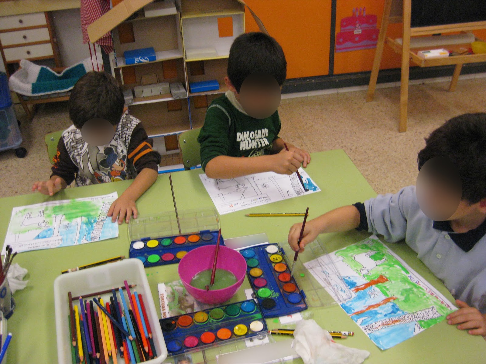 Y bien... una vez todo explicado nos hemos puesto a trabajar con muchas ganas, ya que ¡¡pintar con acuarelas nos encanta!!